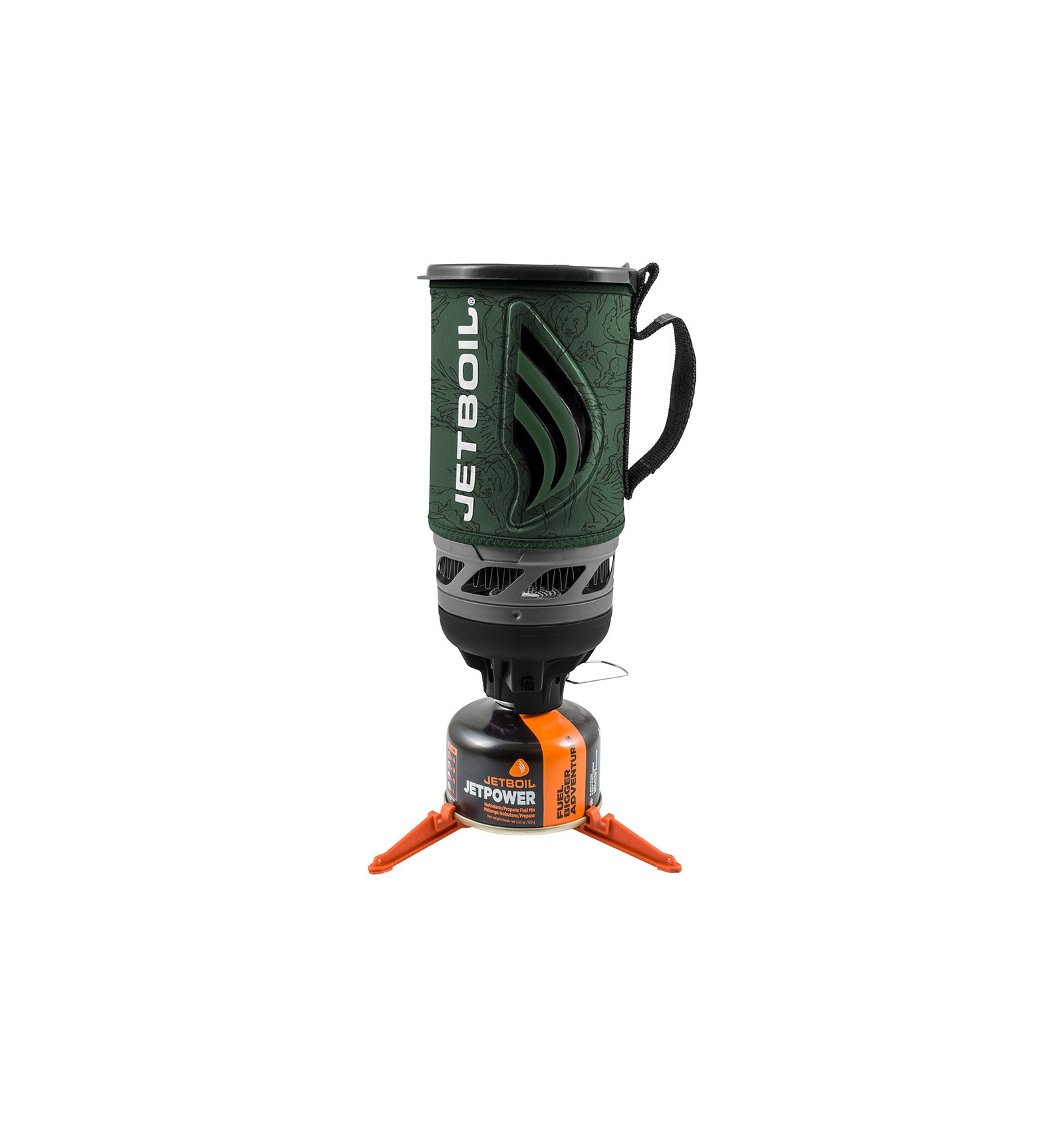 This Jetboil system lights with the click of a button and in just over 2 minutes provides two cups of boiling water for cocoa, coffee, instant soup or a gourmet freeze-dried meal. The newly designed burner secures the igniter, protecting it from bumps along the road. Flash is designed to be one of the safest cooking solutions out there. The cooking cup clips onto the burner, preventing accidental spills, and the fuel canister tripod ensures overall stability. The insulating cozy has a color-changing heat indicator that signals when contents are hot.