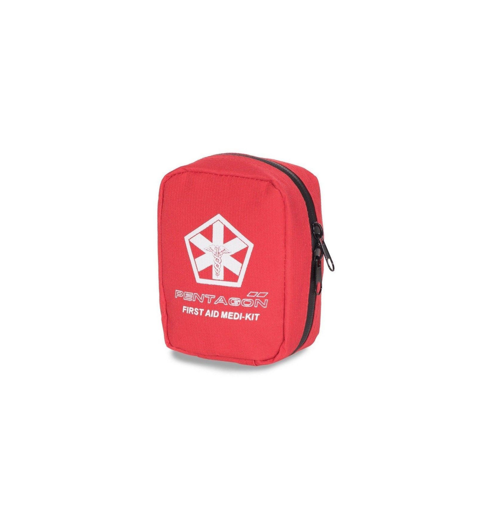 - 2 CPR masks - 2 elastic PBT bandages (7.5 cm X 4.5 m) - Elastic bandage bandage (7.5 cm X 4.5 m) - Pair of scissors - Pair of disposable gloves - 6 various size safety pins - 5 hand cleaning wipes - Wound pad - 10 adhesive bandages - Adhesive tape