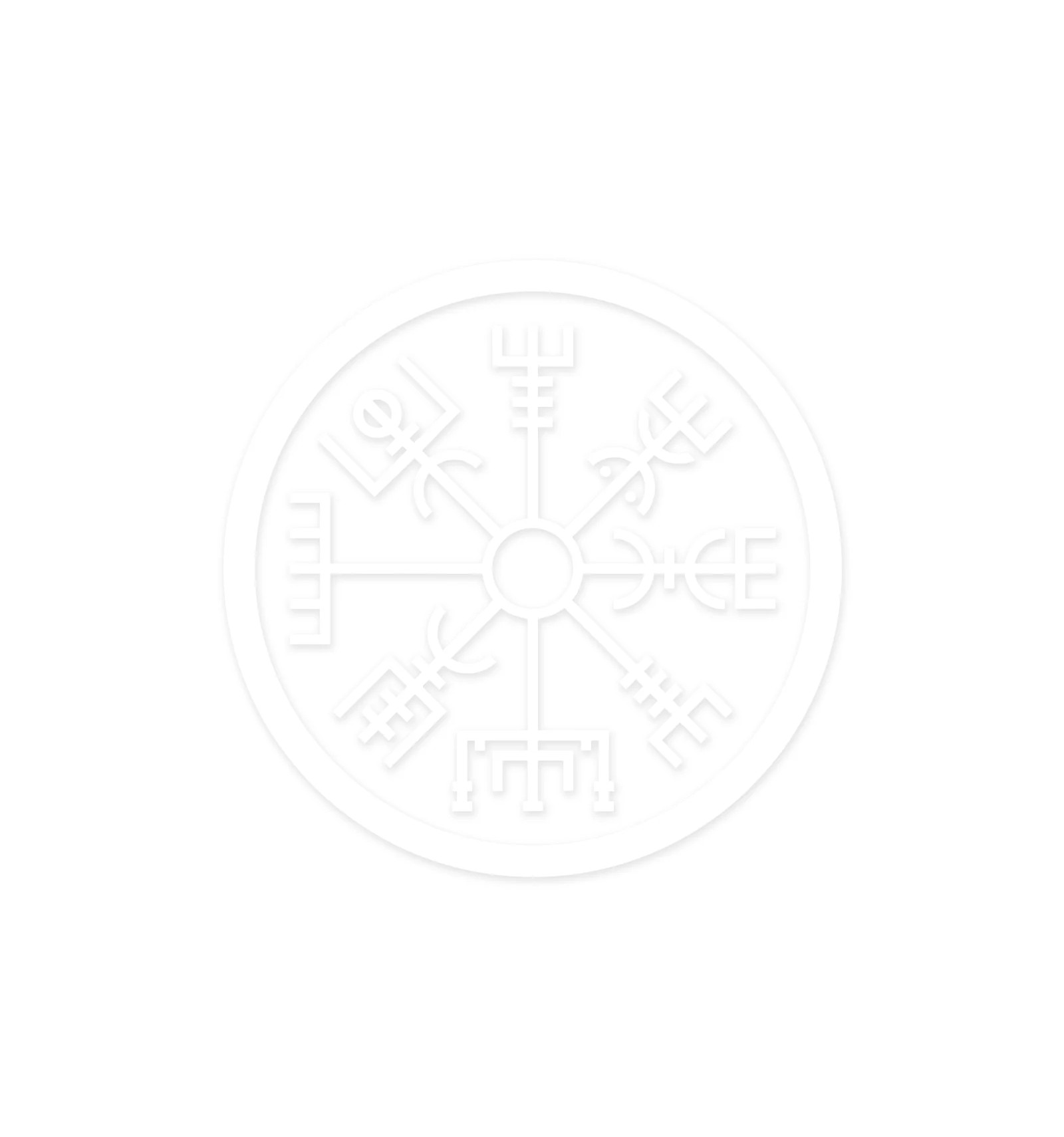 Taille de 4" du symbole Vegvisir dans un autocollant découpé professionnellement en blanc.