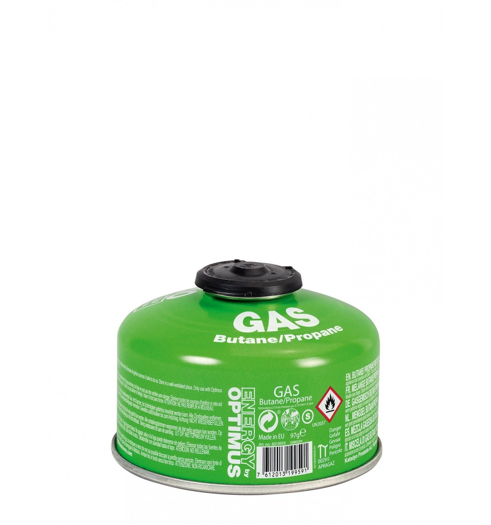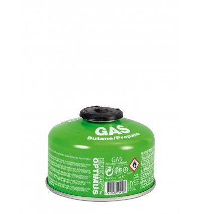 Les cartouches de gaz d‘Optimus 100g sont constituées d‘un mélange de butane (70%) et propane (30%) afin d‘assurer le fonctionnement du réchaud même dans des conditions difficiles. La cartouche est fermée par un bouchon astucieux qui indique si elle est neuve ou non.